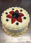 Layer of vanilla cake filled with sweetened cream cheese, topped with assorted fruits